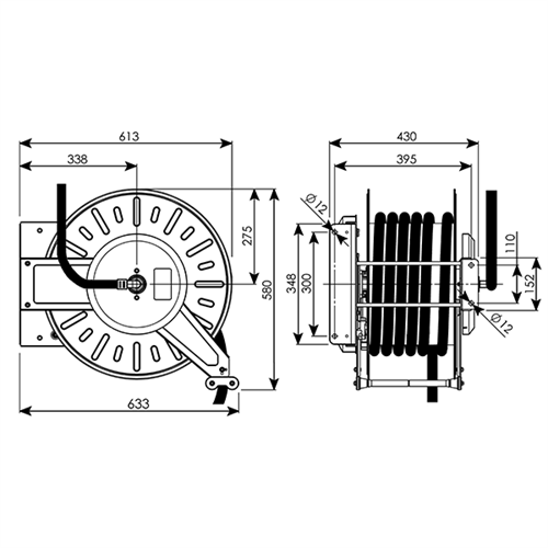 Den öppna konstruktionen möjliggör en enkel montering och byte av slangen och tillåter kontroll av upprullningen.