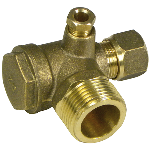 Backventil 1/2" utv - 10 röranslutning, avluftning åt höger